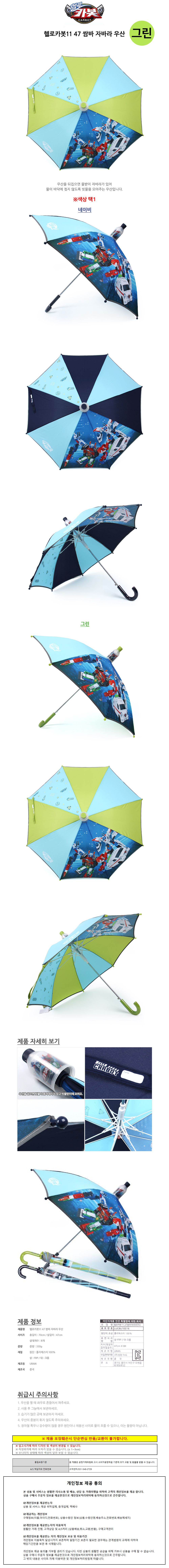 성창 아동우산 헬로카봇11 47 쌈바 자바라 우산 (그린)