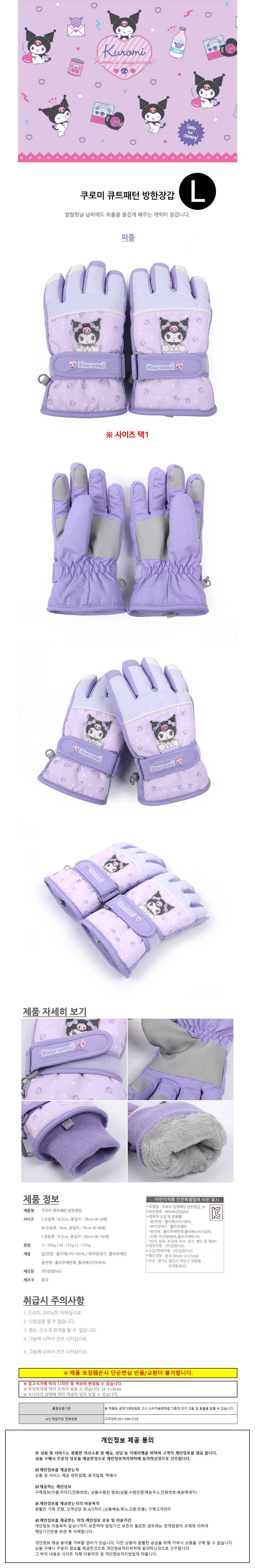 성창 아동장갑 쿠로미 큐트패턴 방한 아동 장갑 (L)