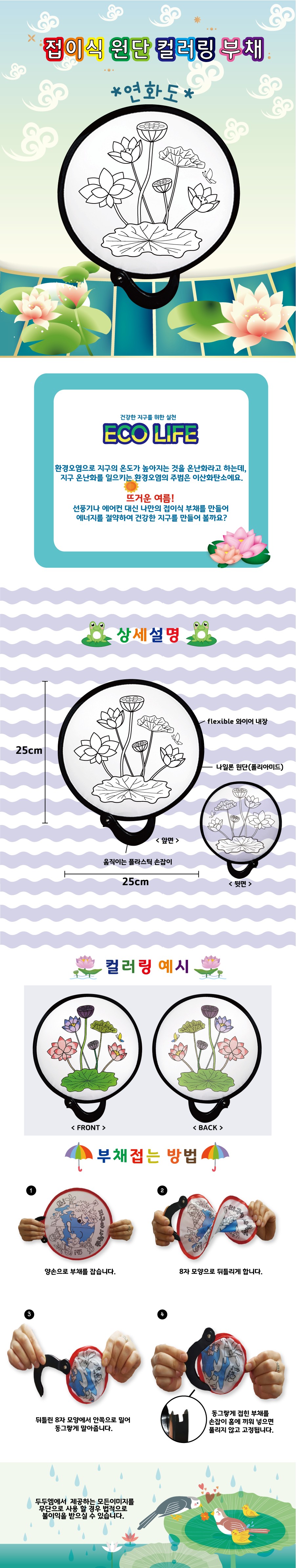 (DD) 두두엠 접이식 원단 컬러링 부채 (연화도)