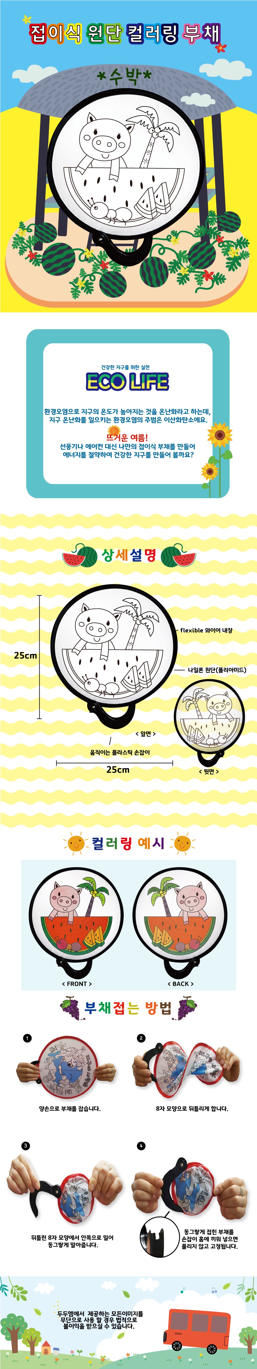 (DD) 두두엠 접이식 원단 컬러링 부채 (수박)