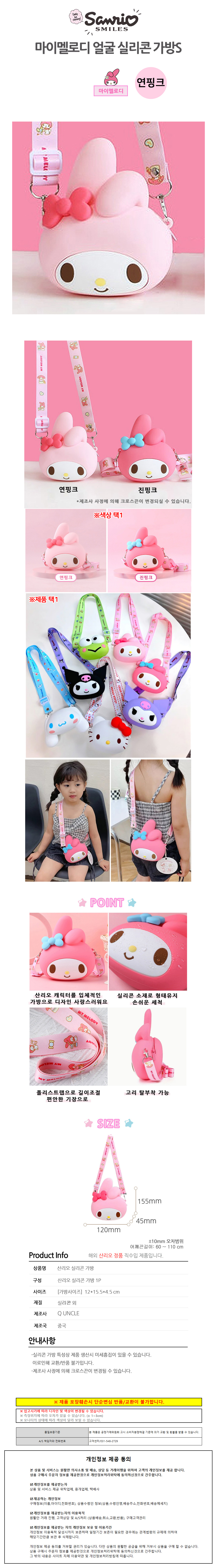나라 아동가방 마이멜로디 실리콘 얼굴 가방 (연핑크) (S)