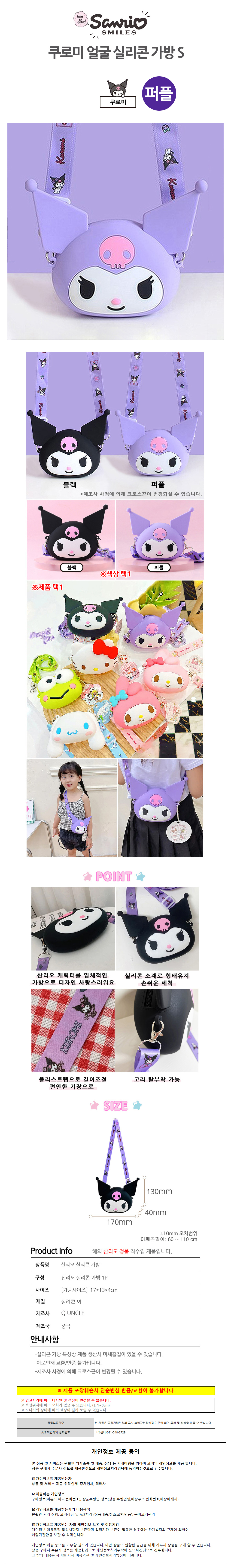 나라 아동가방 쿠로미 실리콘 얼굴 가방 (퍼플) (S)