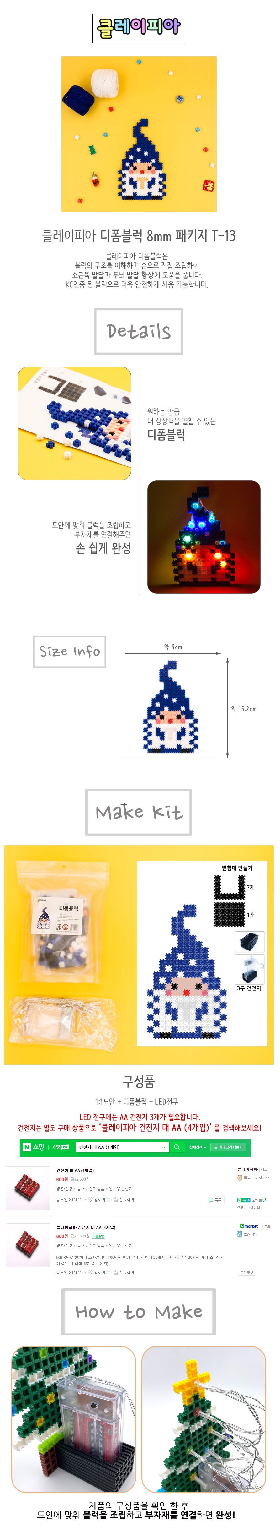 (CL) 디폼블럭 8mm LED 산타요정블루 산타 패키지 (T13)