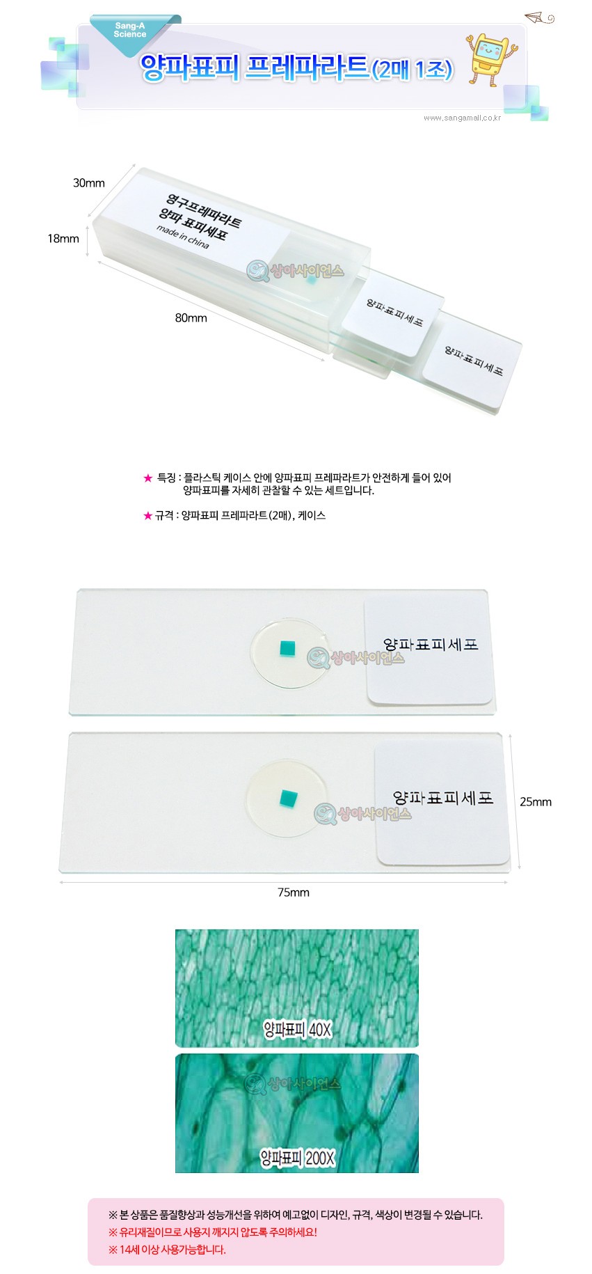 (SA) 양파표피 세포 프레파라트(2매 1조)