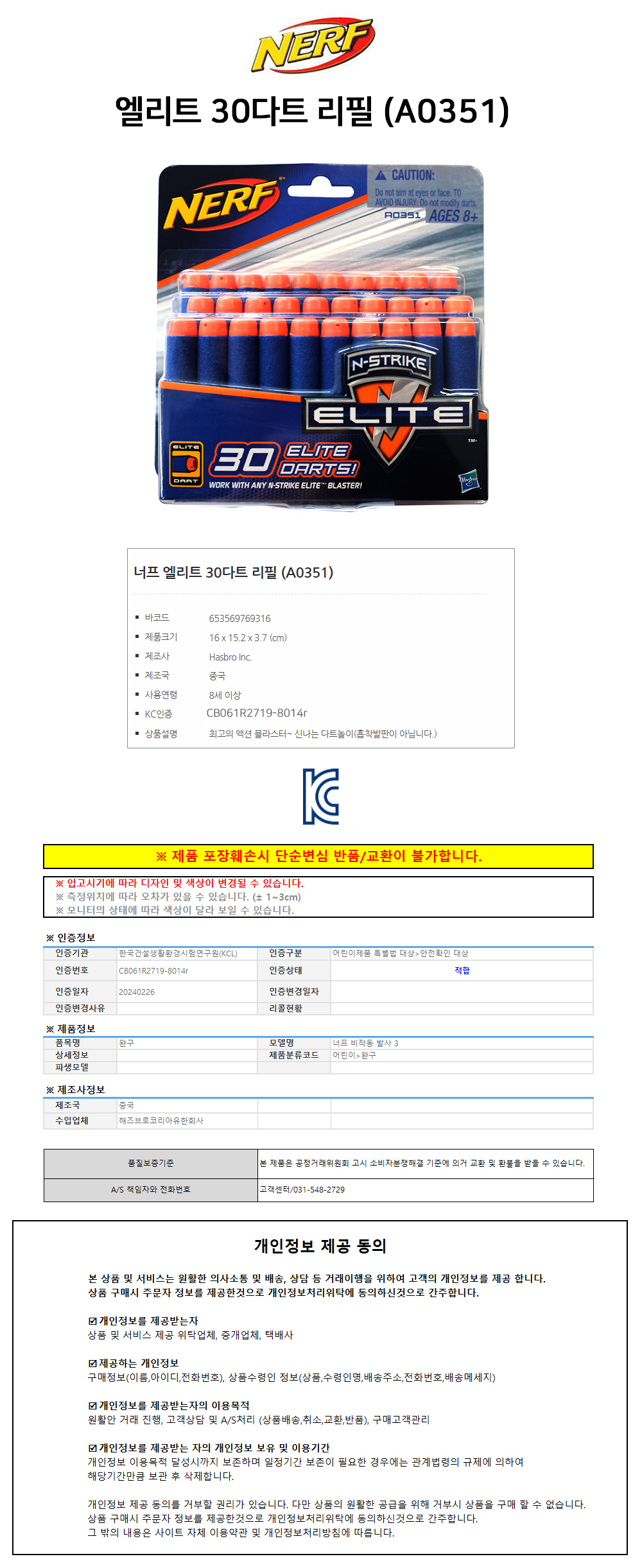 너프 장난감총 엘리트 30다트 리필 (A0351) (다트총 별매)