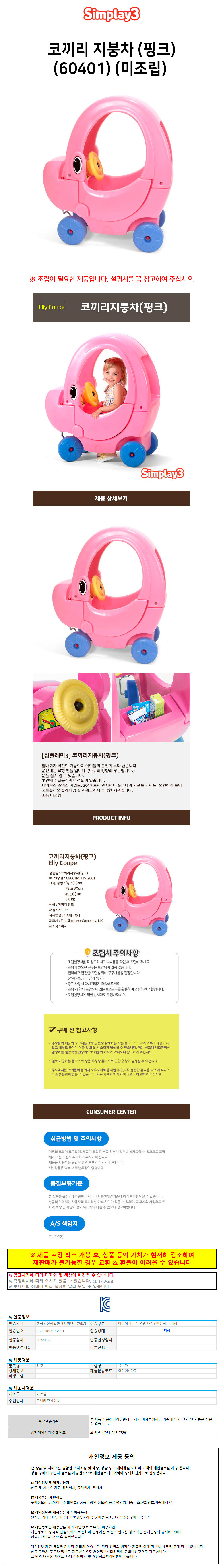 심플레이3 붕붕카 코끼리 지붕차 (핑크) (60401) (미조립)