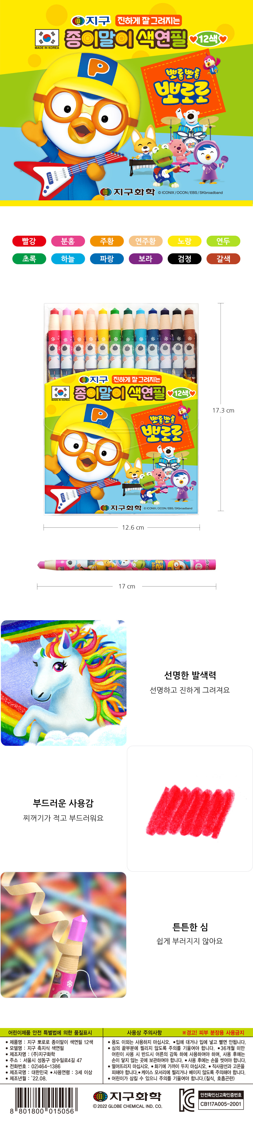 | 품명 및 모델명 | 지구 뽀로로 축지식 색연필 12색 |