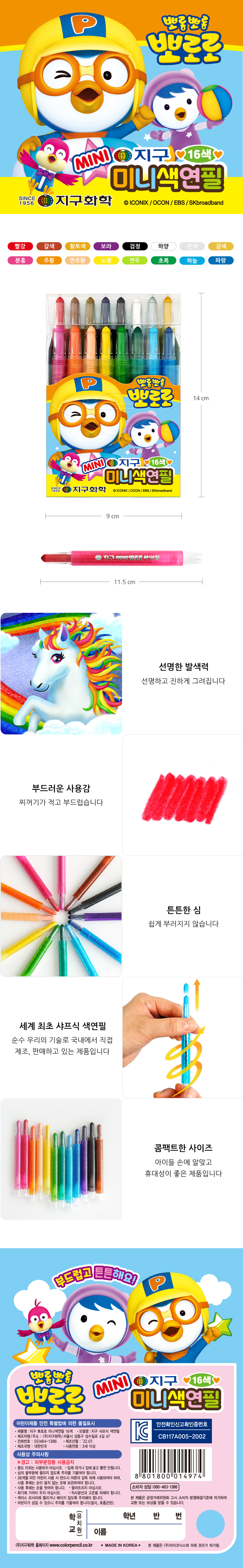 | 품명 및 모델명 | 지구 뽀로로 미니 색연필 16색 |