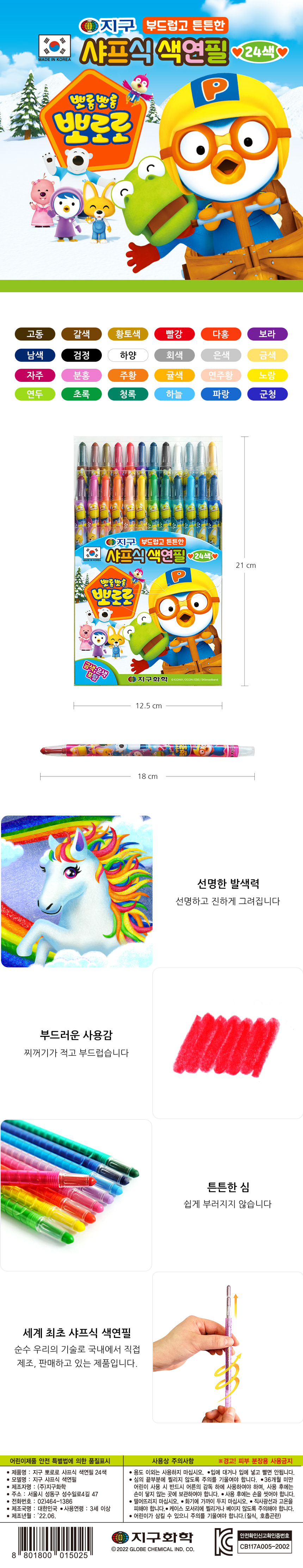 | 품명 및 모델명 | 지구 뽀로로 샤프식 색연필 24색 |