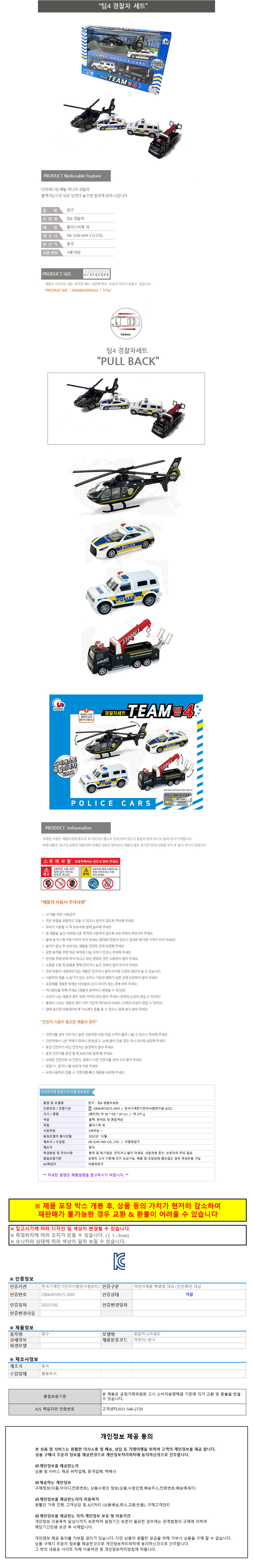 • 인증정보[어린이제품] 안전확인 : CB063R10575-2001
