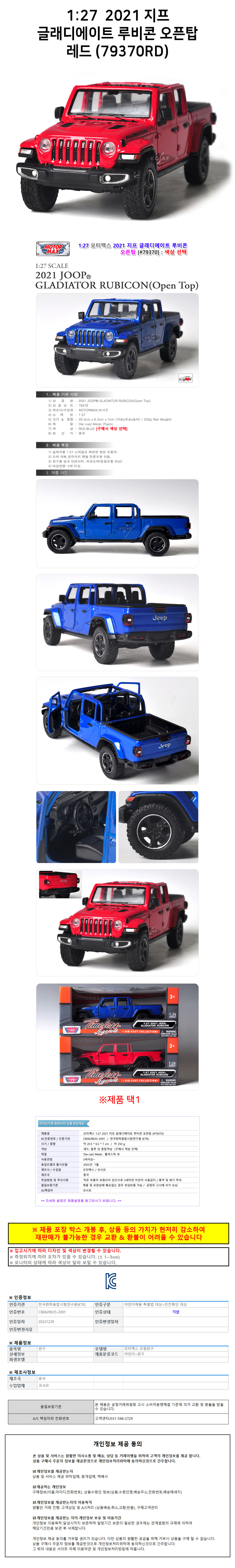 모터맥스 1대27 2021 지프 글래디에이트 루비콘 오픈탑 레드 (79370RD)