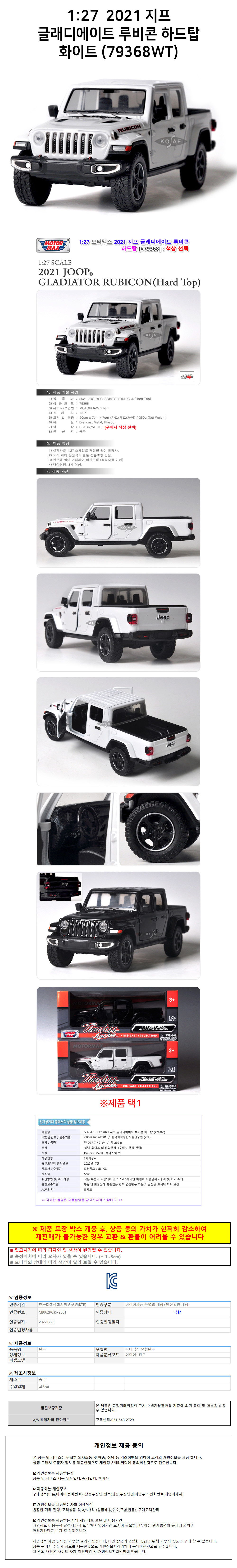 모터맥스 1대27 2021 지프 글래디에이트 루비콘 하드탑 화이트 (79368WT)