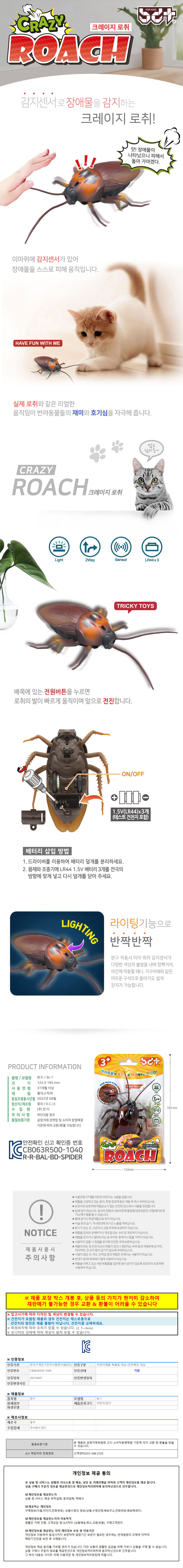 반디 로봇완구 반려동물과 함께 즐기는 크레이지 로취 (센서작동)
