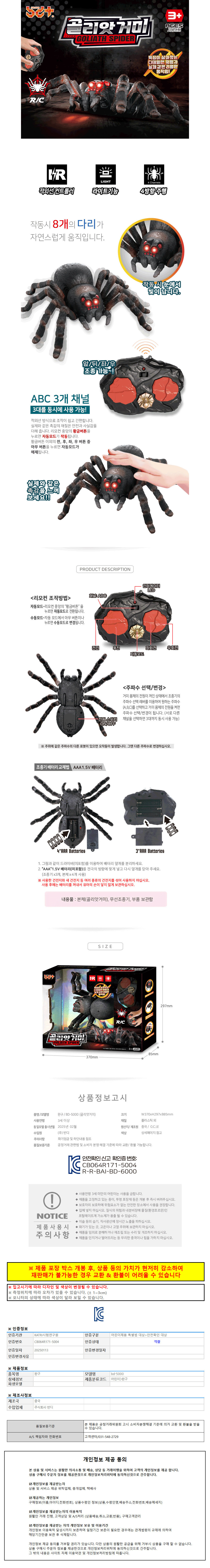 반디 로봇완구 디테일한 외형 골리앗 거미 무선조정 RC 장난감