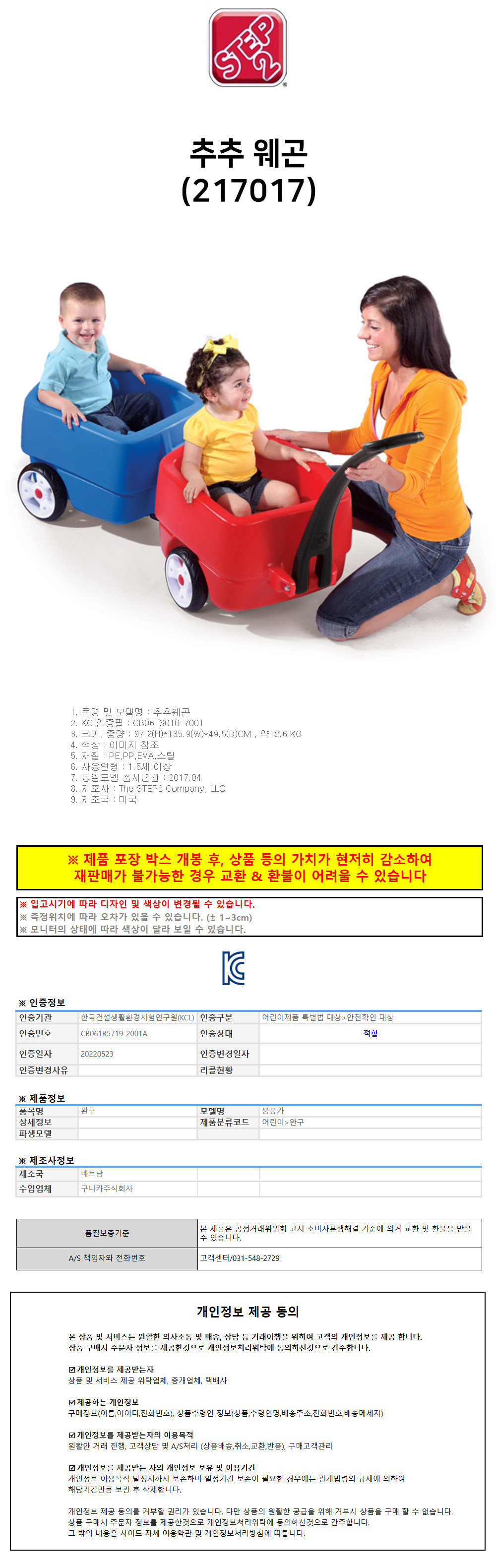 • 인증정보[어린이제품] 안전확인 : CB061R5719-2001A