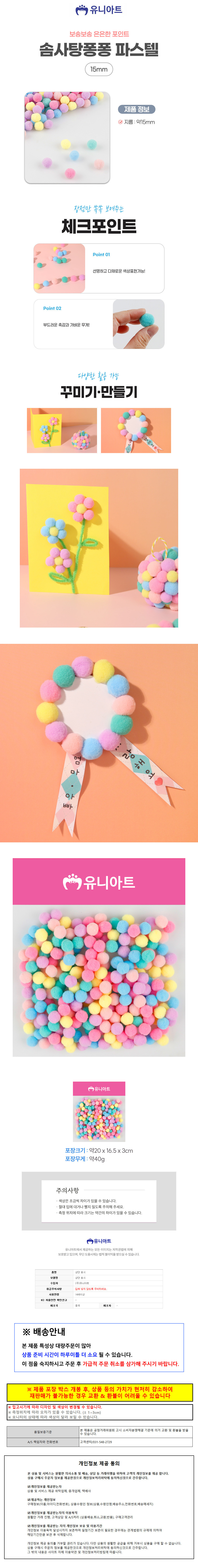 유니아트 (퐁퐁) 솜사탕 퐁퐁이 15mm (파스텔)