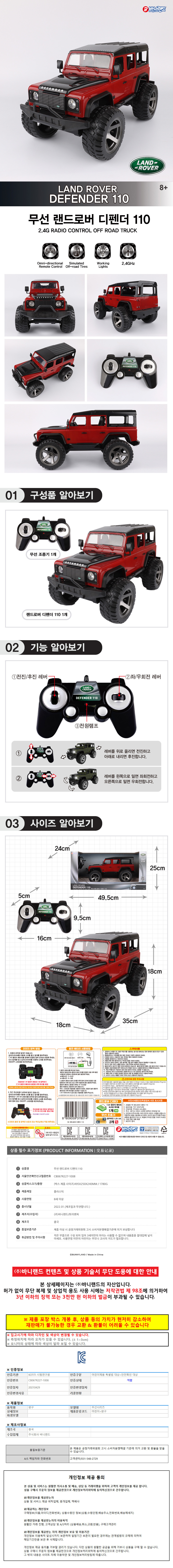 바니랜드 RC카 무선 랜드로버 디펜더 110 (레드)