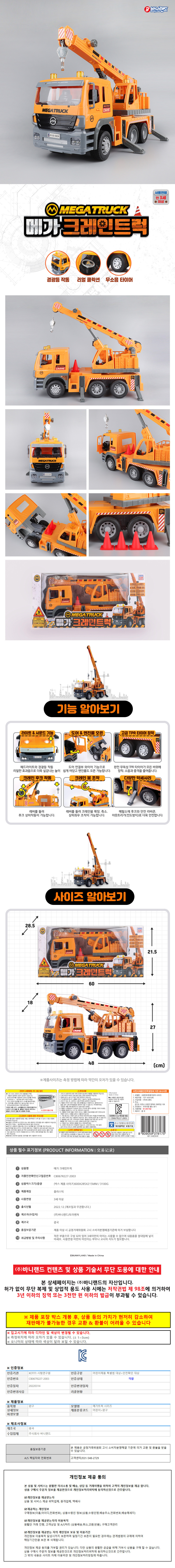 바니랜드 자동차장난감 메가 크레인 트럭