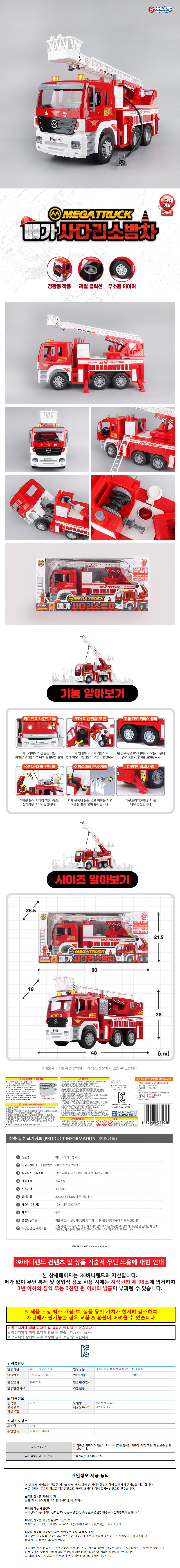 바니랜드 자동차장난감 메가 사다리 소방차