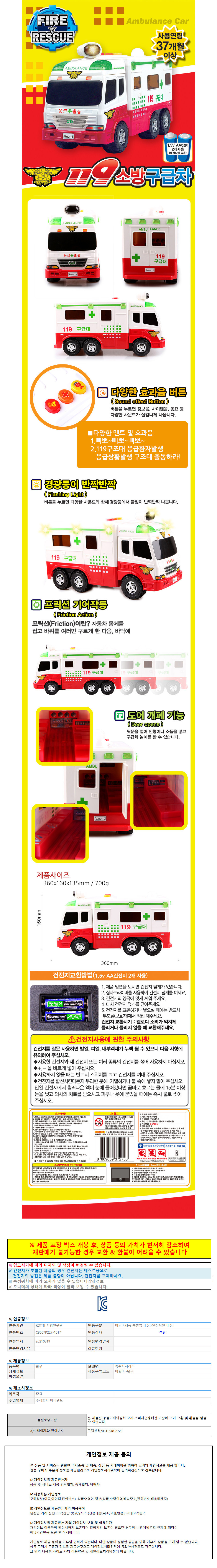 바니랜드 자동차장난감 119 소방 구급차 구급대 (대형)