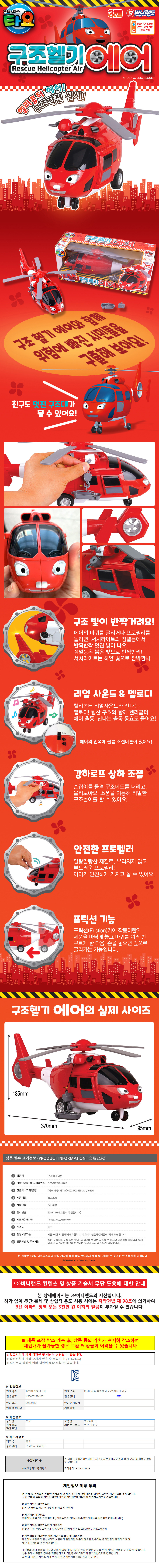바니랜드 헬기완구 타요 구조헬기 에어 헬리콥터