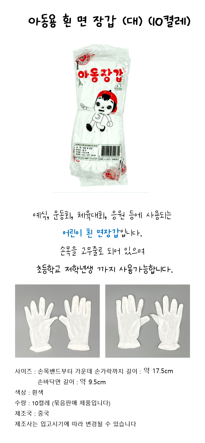 • 모델명(TNB) 아동용 흰장갑(대)-10개