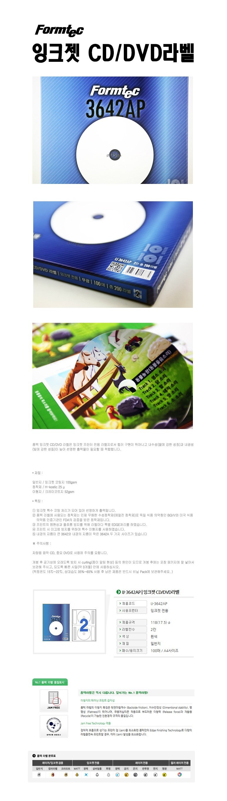 (BE) 폼텍 잉크젯 CD DVD라벨 IJ-3642AP 2칸 100매