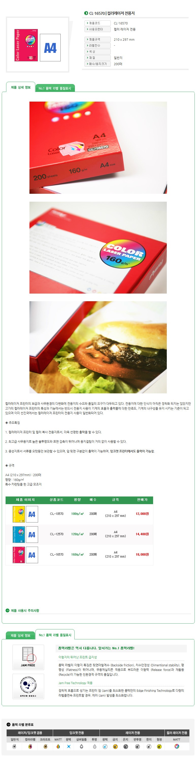 • 모델명(BE) 폼텍 A4 컬러레이저 전용지...
