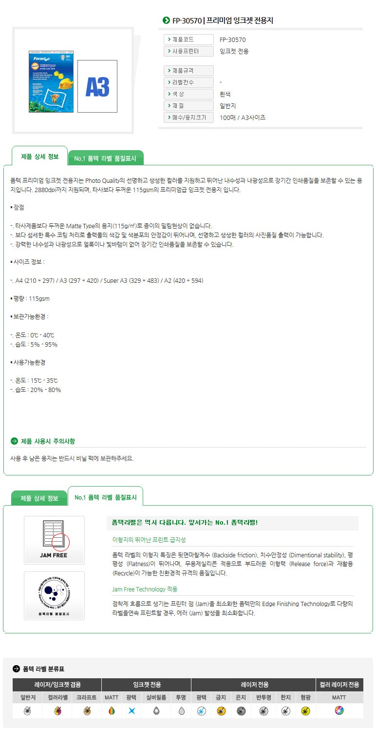 • 모델명(BE) 폼텍 A3 프리미엄 잉크젯전...