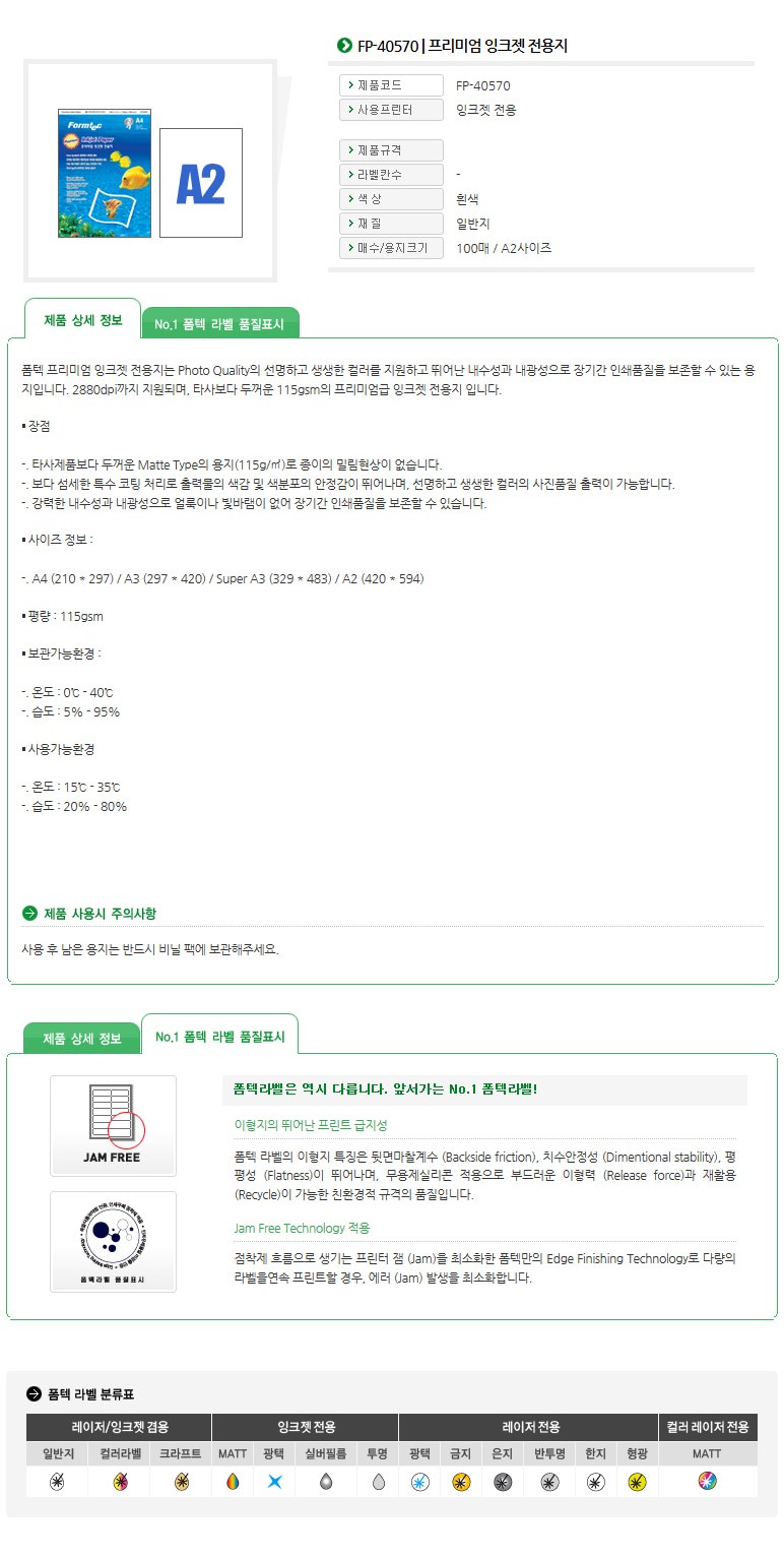 • 모델명(BE) 폼텍 A2 프리미엄 잉크젯전...