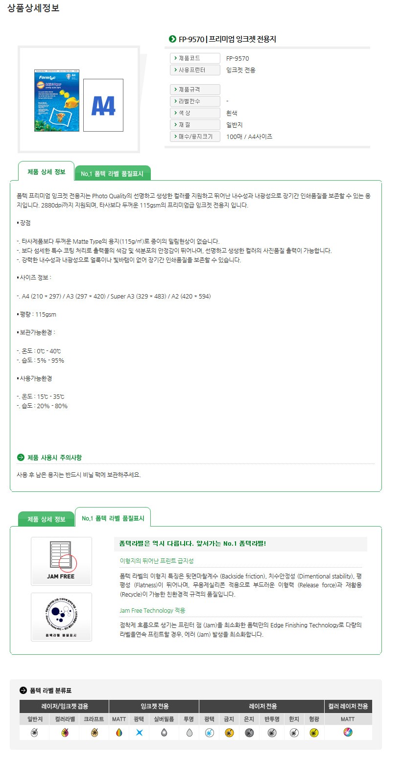 • 모델명(BE) 폼텍 A4 프리미엄 잉크젯 ...