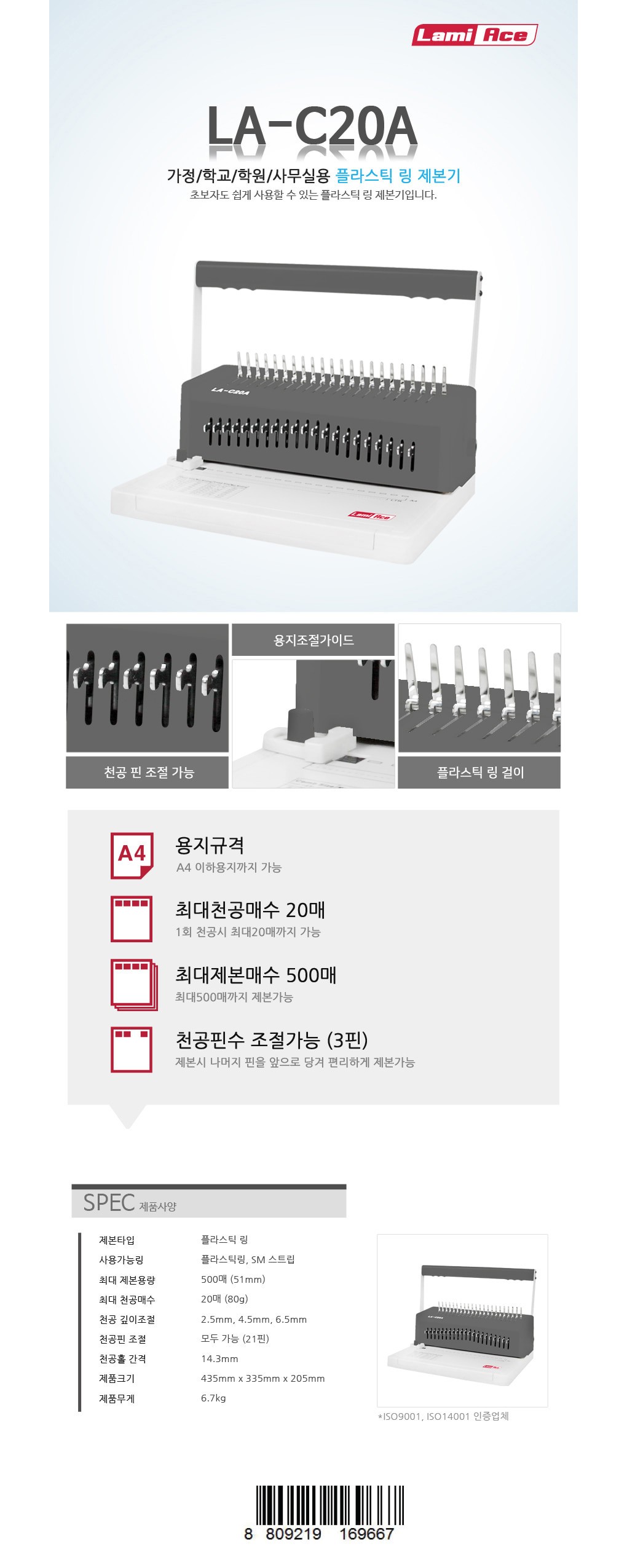 (BE) 라미 플라스틱링제본기 LA-C20A