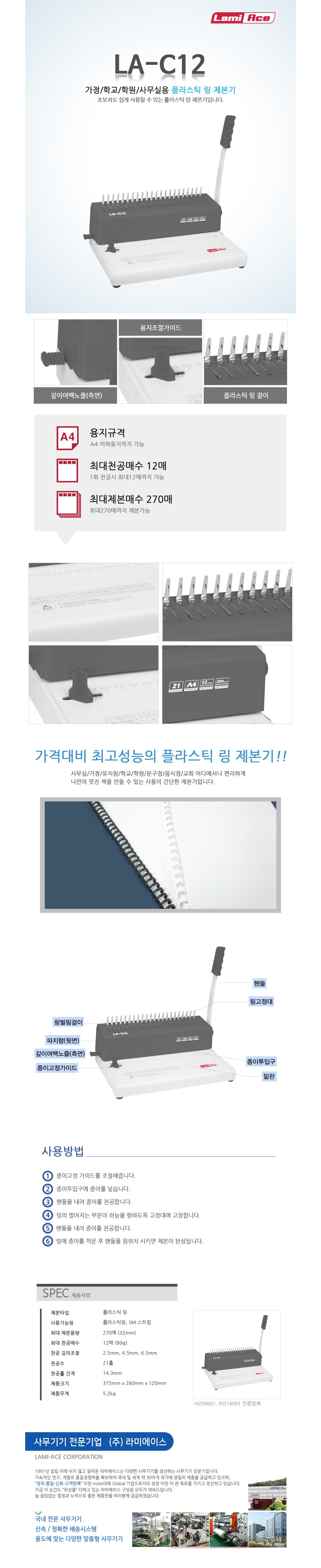 • 모델명(BE) 라미 플라스틱링제본기 LA-...