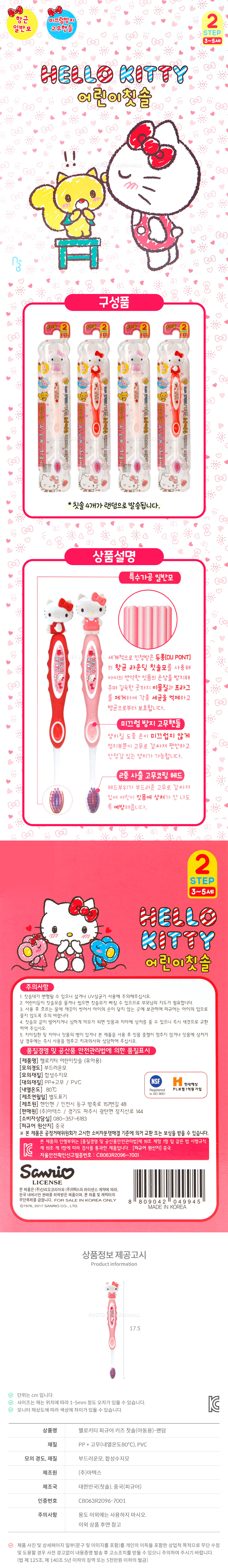 | 품명 및 모델명 | 헬로키티 피규어 키즈 칫솔(아동용)-랜덤(4EA) |
