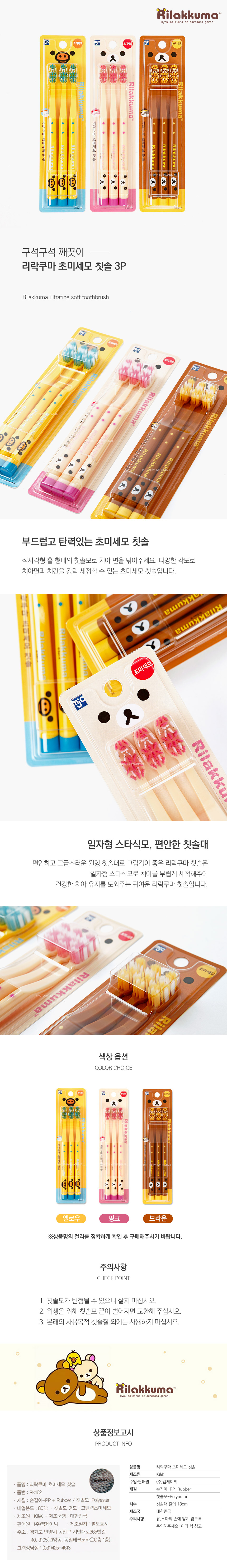 | 품명 및 모델명 | 리락쿠마 초미세모 칫솔 3P-핑크 |