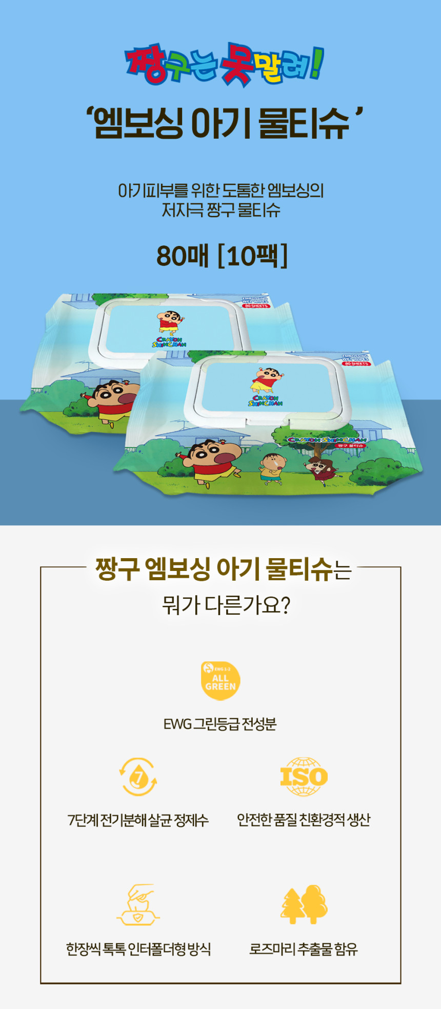 짱구 굿즈 엠보싱 물티슈 80매 짱구와친구들 10팩