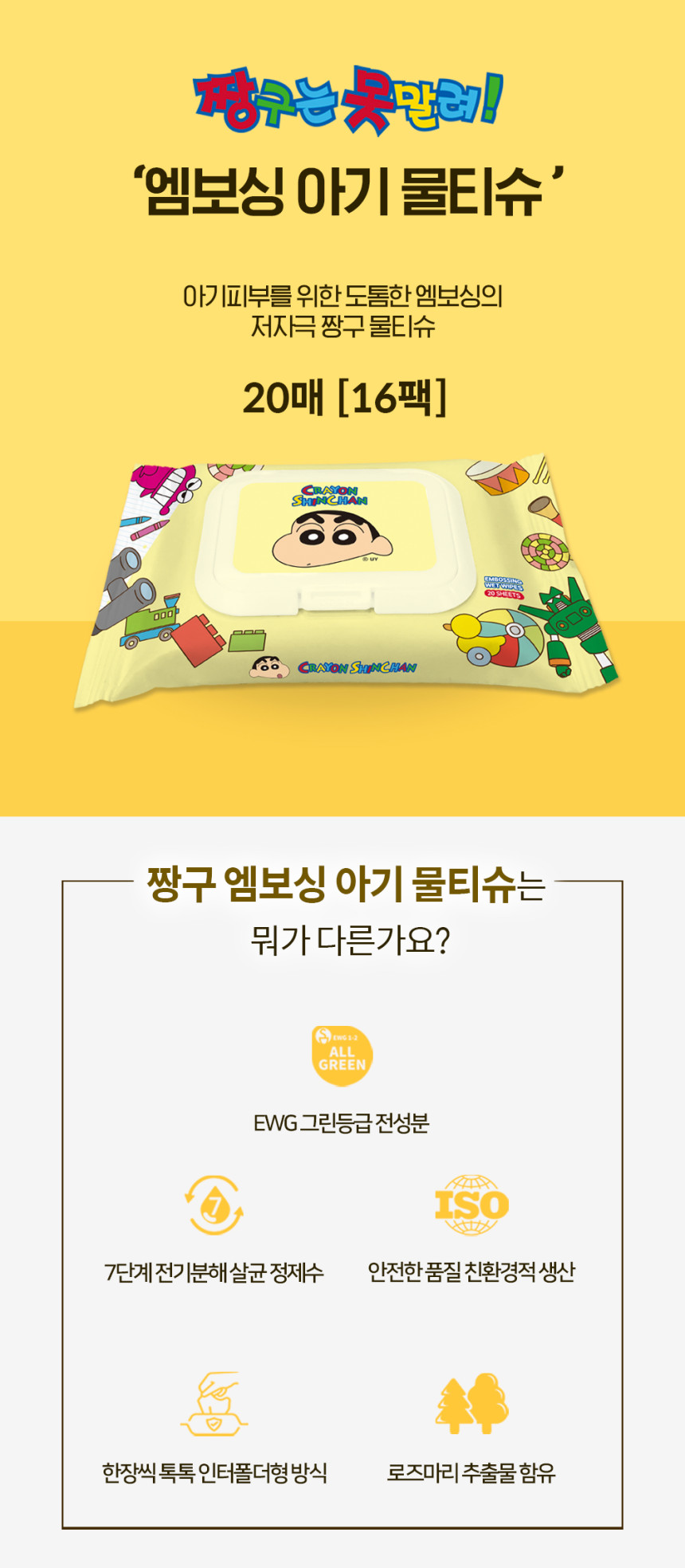 짱구 굿즈 엠보싱 물티슈 20매 장난감상자 16팩