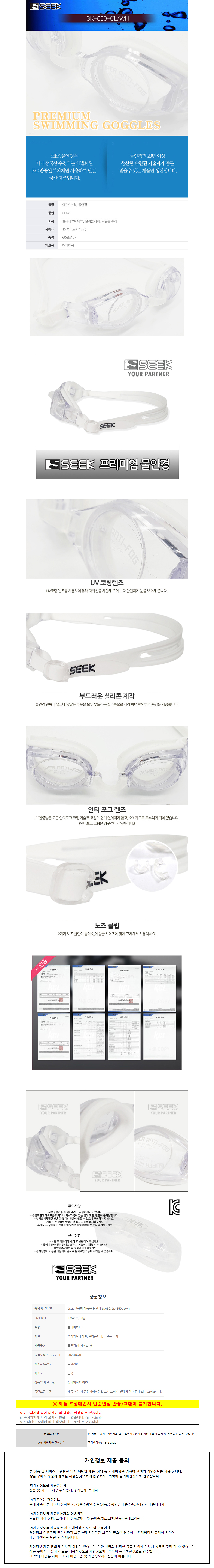 SEEK 보급형 아동용 물안경 (클리어) (SK650CL)