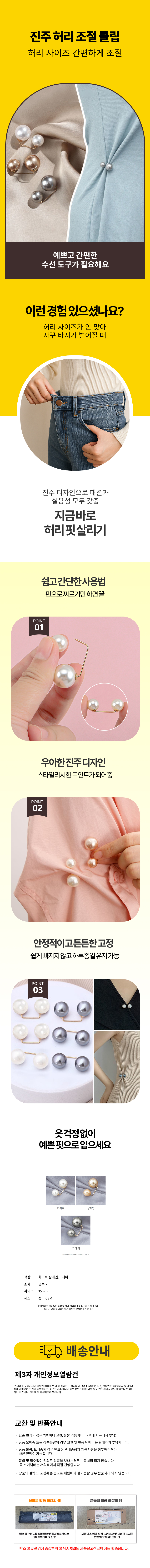 진주 수선 클립 옷핀 벌어짐방지 허리 조절