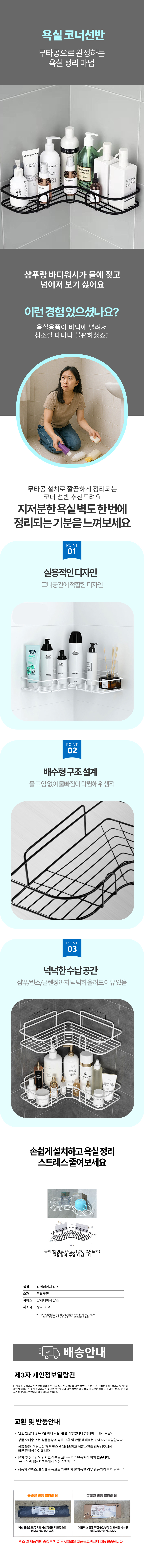 거치대 멀티 흡착식 코너선반 샴푸 무타공 멀티 방수
