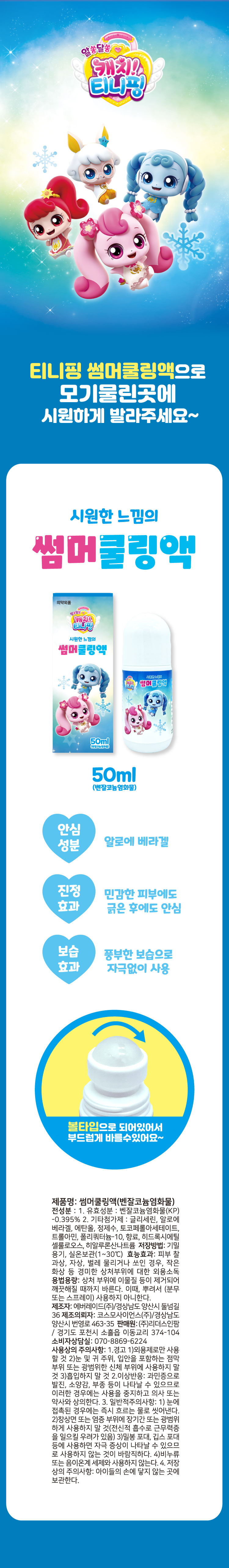 | 품명 및 모델명 | 알쏭달쏭 캐치티니핑 시원한 썸머쿨링액 50ml 1개 |