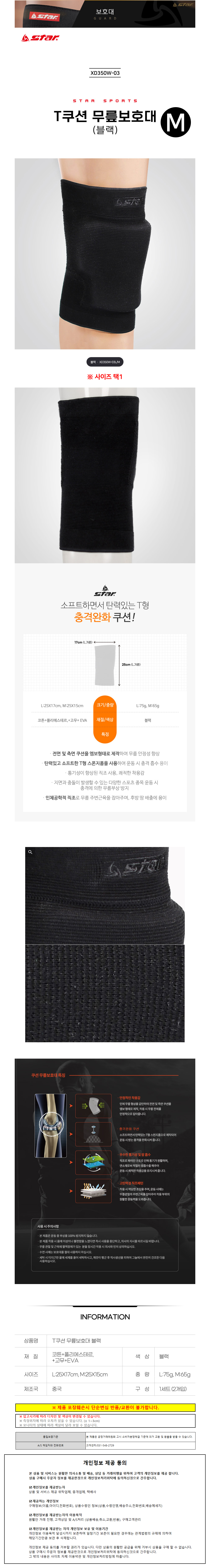 스타스포츠 무릎패드 T쿠션 무릎보호대 블랙 (M) (XD350W-03M)