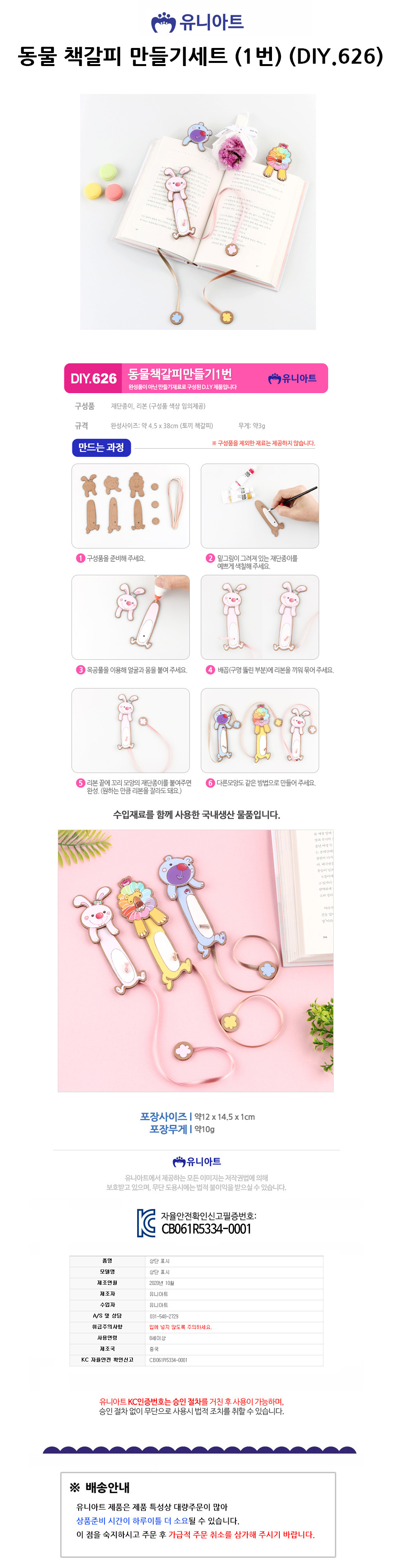 유니아트 DIY.626 1500 동물 책갈피 만들기세트 1번