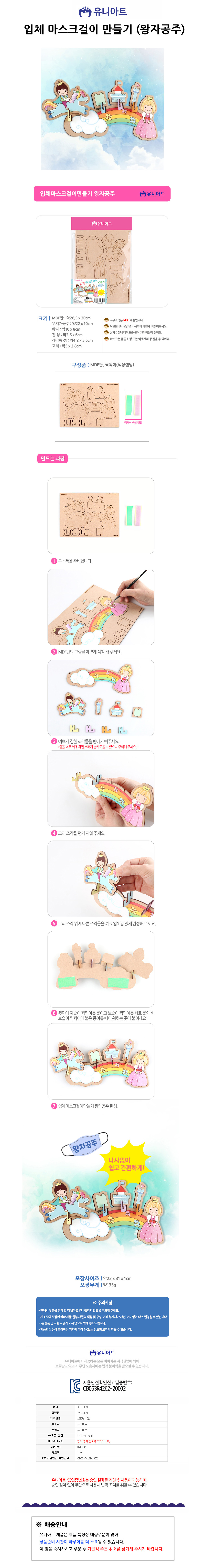 유니아트 DIY 2500 입체 마스크걸이 만들기 왕자공주