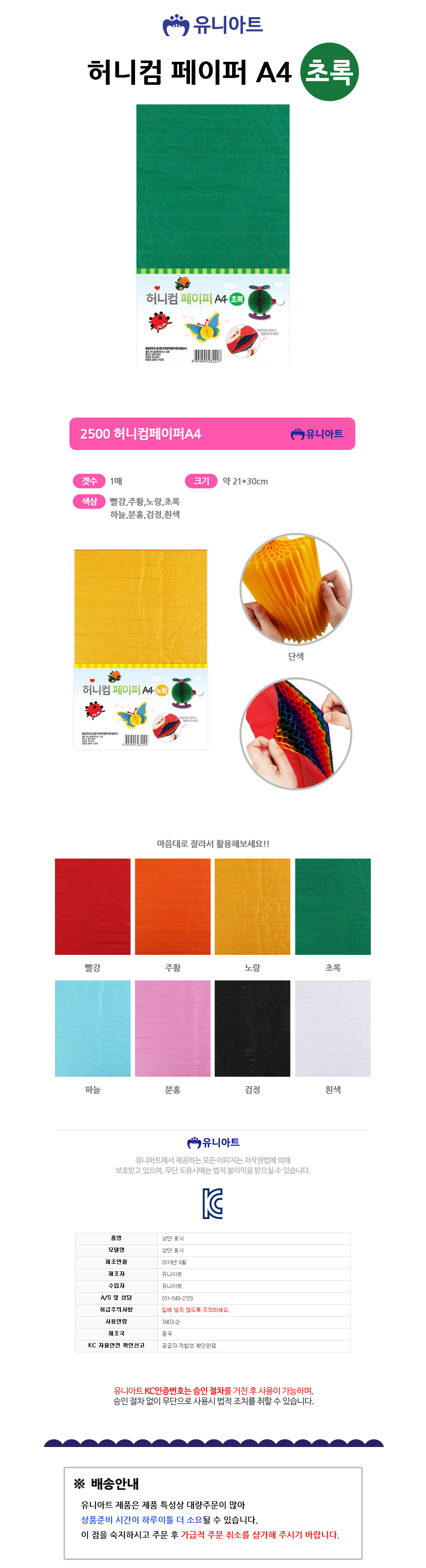 유니아트 2500 허니컴 페이퍼 A4 초록
