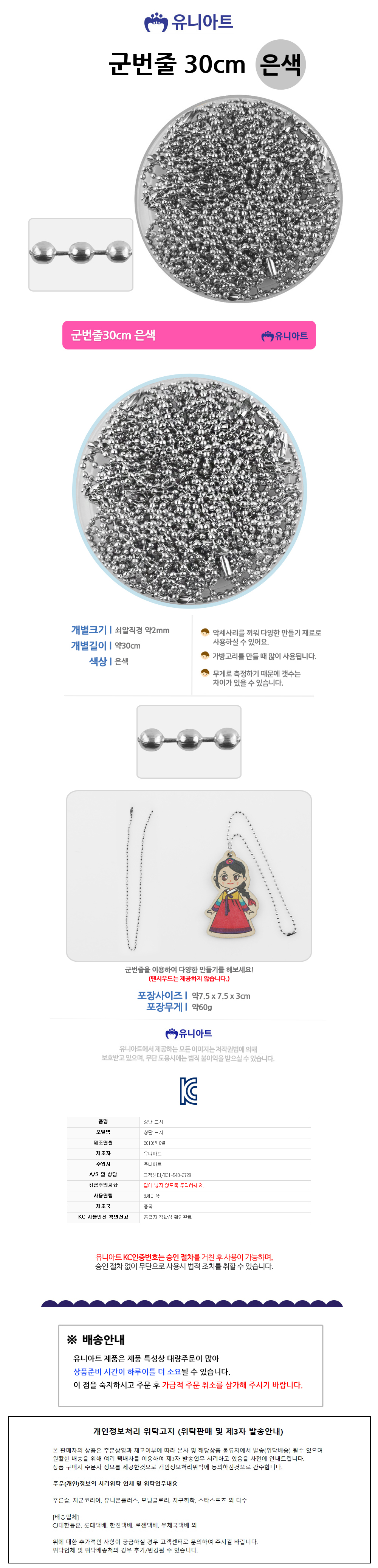 유니아트 (쇠재료) 군번줄 은색 30cm (통)