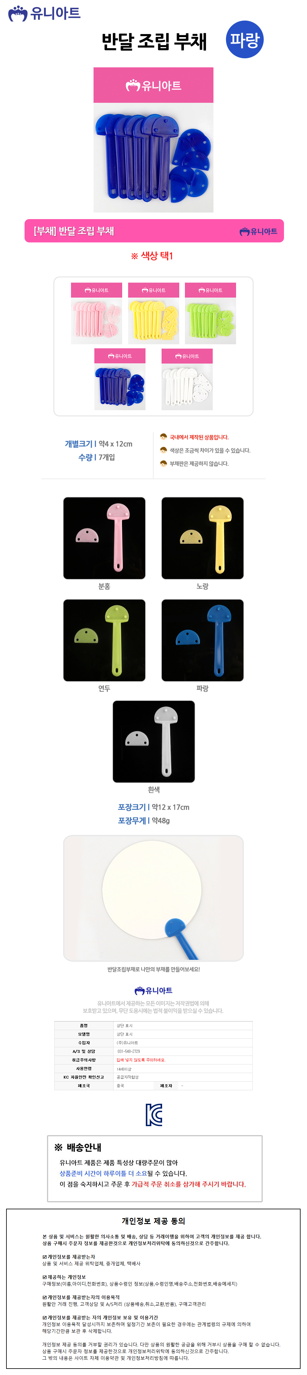 유니아트 (부채) 2000 반달 조립 부채 (파랑)