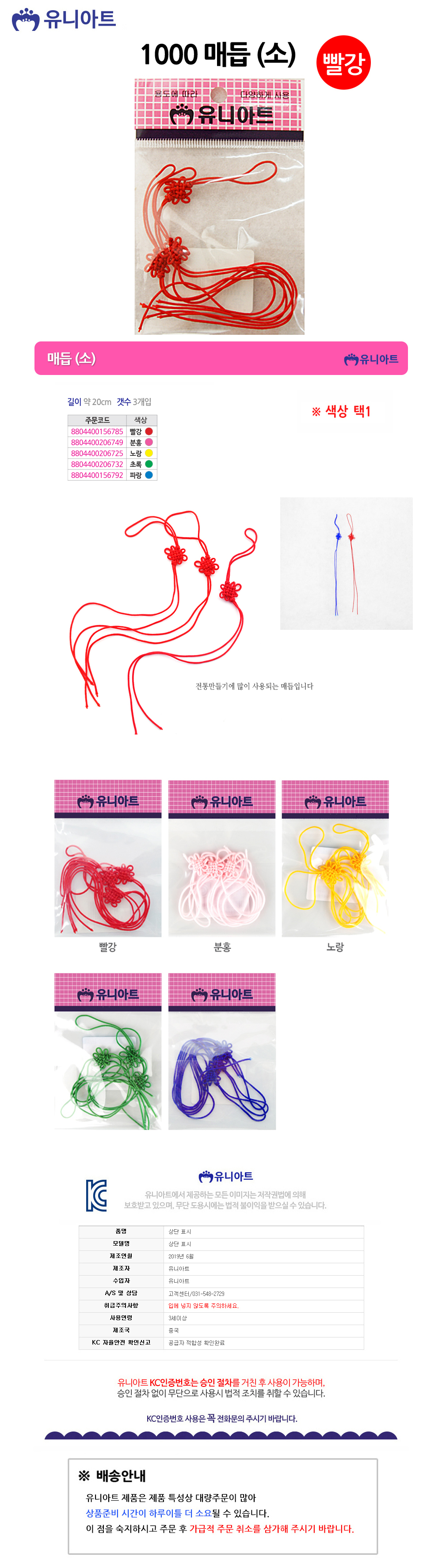 유니아트 매듭 1000 매듭 소 빨강 3개입