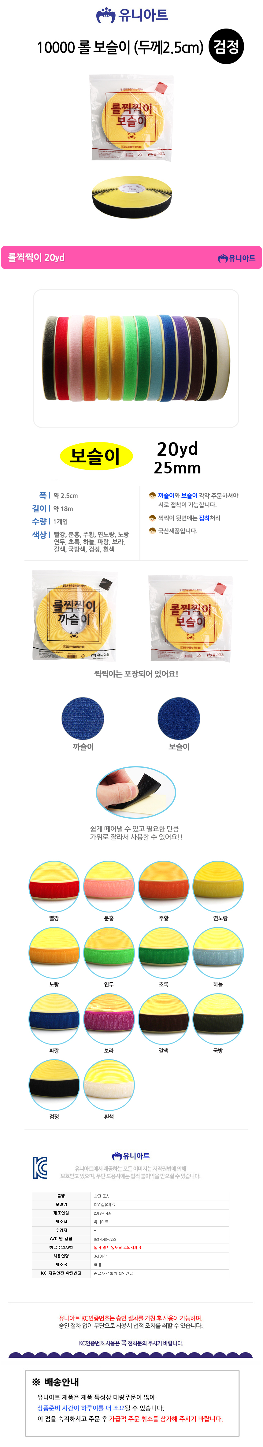 유니아트 찍찍이 10000 롤 보슬이 두께2.5cm 검정