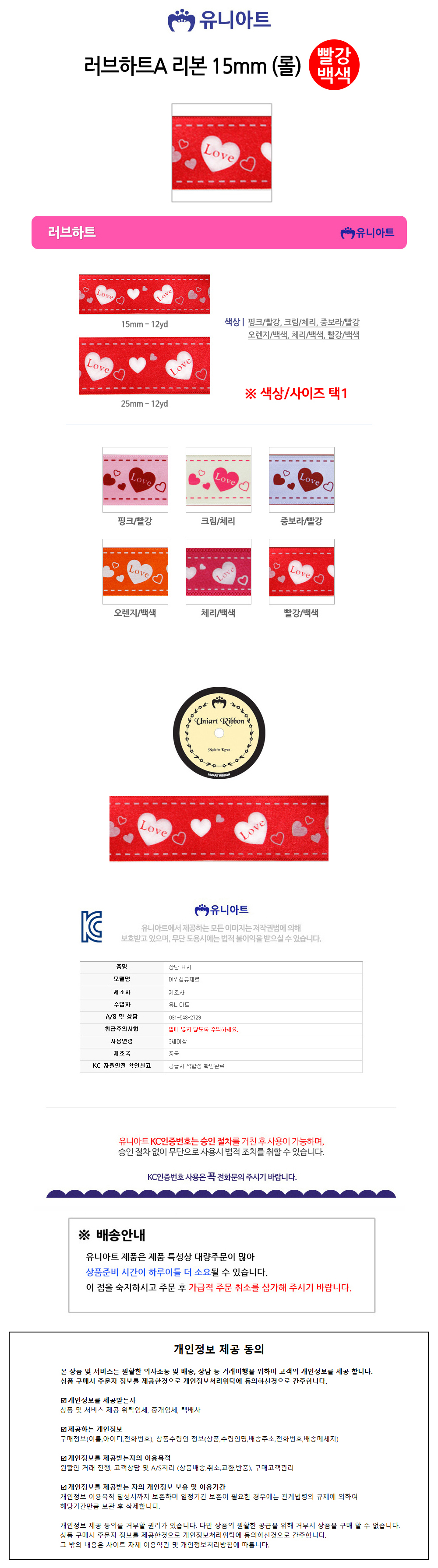 유니아트(리본) 6000 러브하트A 리본 15mm (빨강백색) (롤)